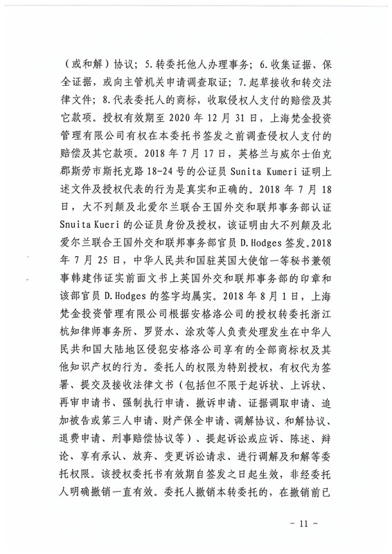 其次,联合商标是指同一商标所有人在相同或类似的商品上注册的若干个近似的商标,其中,最先注册的或主要使用的商标为主商标。本案原告在相同商品类别上注册了与第973732号商标近似的四个商标,并在经营活动中主要使用973732号商标,故应认定上述商标构成联合商标,同时根据授权委托书权限来看,也可以认定上海梵金投资管理有限公司有权对涉案商标提起诉讼。