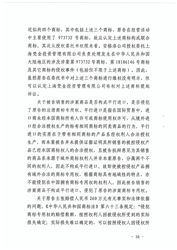 此外,被告并未提供证据证明其所销售的被控侵权产品获本国商标权人的合法授权,且被告的抗辩意见为其销售的商品系来源于域外商标权利人并非本案原告,分属两个不同的权利人,因此不构成平行进口,被告销售的涉案商品侵犯了原告的涉案商标专用权。